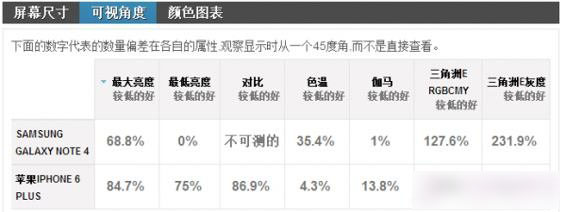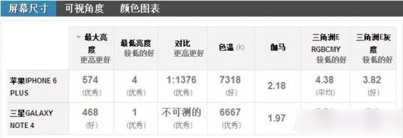 在屏幕亮度上一直是三星的痛点,Galaxy Note 4 也不例外,iPhone 6 Plus 的最大亮度达到了惊人的574nt,而Galaxy Note 4仅有468nt。
