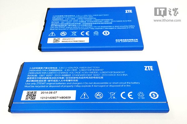 ▲上面从上到下,分别是中兴V5 Max以及V5s的电池,容量依次为3000mAh和2400mAh。