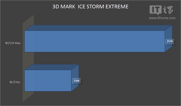 GPU部分,高通骁龙410使用的是Adreno306,最高频率为400MHz。在上面的GFXbench测试环节中,V5s由于仅仅采用了1GB内存,无法通过我们的1080P离屏测试,以上跑分为两者实际的场景运行状况;在负载较大的3D Mark ICE Storm Extreme测试中,两款机型应对起来都比较吃力,画面的卡顿延迟比较明显,考虑到该处理器的市场定位,表现比较正常。