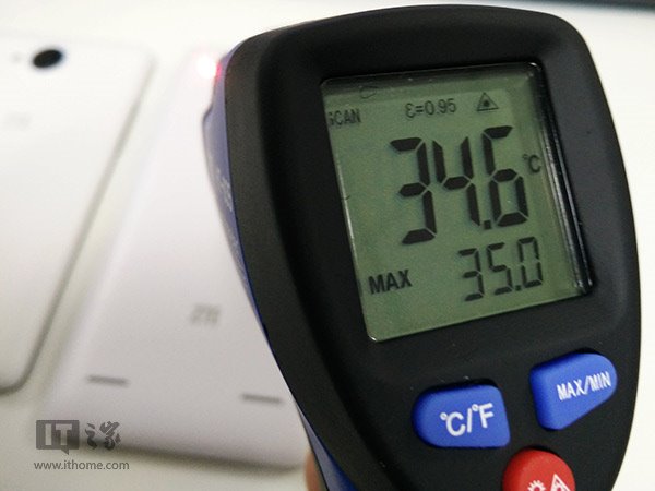 ▲ 中兴V5 Max发热集中在背面摄像头左侧部分,测得的最高温度为35℃。