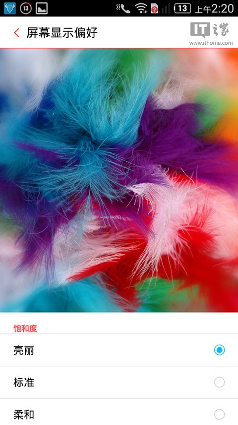 中兴V5s以及V5 Max屏幕均采用了OGS全贴合技术,屏幕分辨率为1280*720。二者的屏幕像素密度分别为267ppi以及294ppi,正常观看情况下两者的区别不太明显。而且中兴还为两款手机单独定制了屏幕IC,可以在显示设置中对屏幕饱和度进行调整,共有亮丽、标准、柔和三种模式可选。