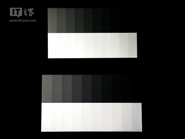 ▲两款机型的灰度显示情况,上面的机型为V5s,下面为V5 Max,各灰阶间的区分比较清晰。