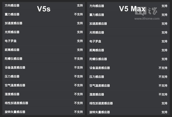 我们在体验中兴V5s以及V5 Max的过程中,还发现二者的传感器配置有些不同,一起来看看: