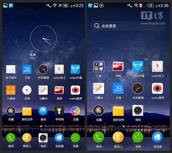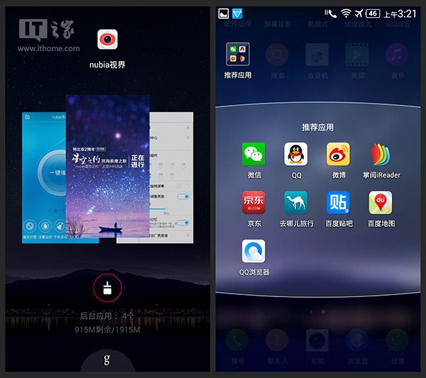 ▲nubia UI 2.5的后台切换功能,以及带弹力动画效果的文件夹打开方式。