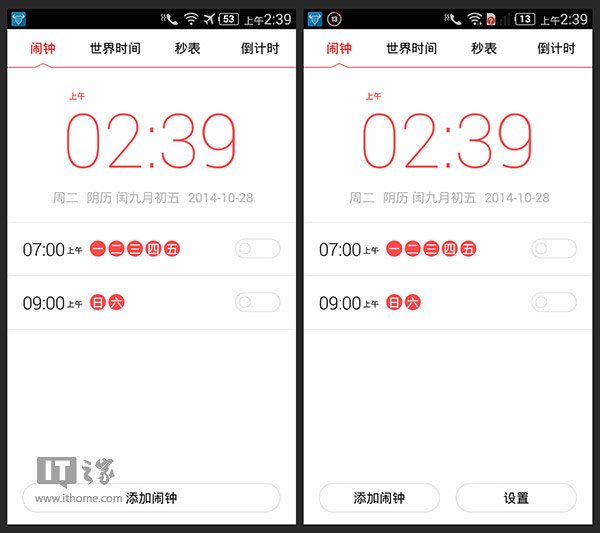 ▲其他功能方面,二者十分相似,没有特别大的区别。不过,我们在闹钟设置中发现了一个小区别,V5s可以通过右下角的设置开启“关机闹钟”功能。