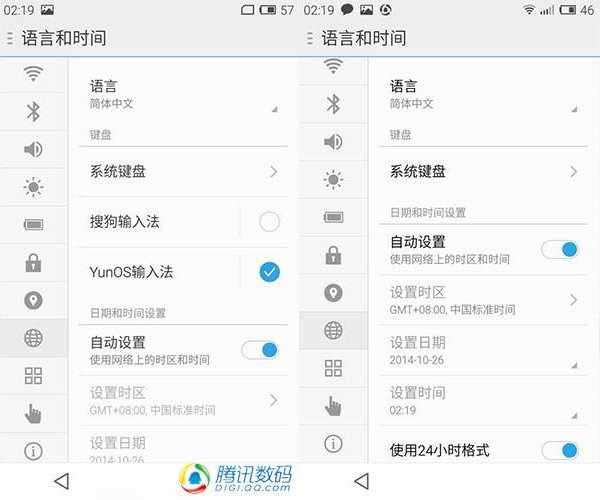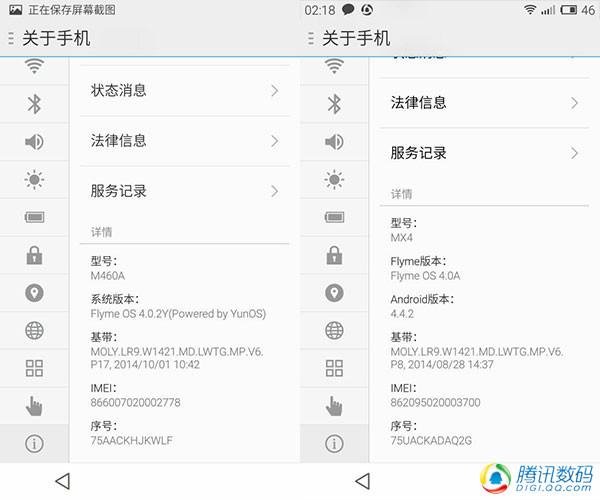 从外形上看,除了新增加的配色以外,两个机器几乎没有任何差别,点亮屏幕,UI方面也完全保留了Flyme的整体风格,最明显的区别在YunOS版本的最左边一屏加入了YunOS特有的卡片化生活助手。另外在一些细小的图标,安全中心图标上也有一定的调整。不过说到底YunOS做的是非常底层的工作,从用户使用的感官上来看其实确实没太大区别。只有进入到系统设置中才能看到,我们之前评测的MX4采用的是Flyme OS 4.0A版本,而YunOS版本的MX4采用的是Flyme OS 4.0.2Y(Powered by YunOS)版本的Flyme。另外在默认键盘和开机时候的登陆方式上加入了YunOS的选项。