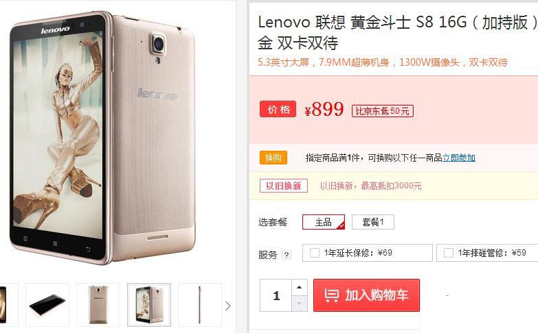 1号店最近对手机类产品的促销不遗余力,黄金斗士S8加持版日前也加入了促销之列,比平台的价格低了近百元,当前促销价格只需899元。