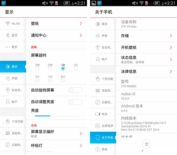 中兴V5系列总能抢先体验nubia UI系统让nubia自家手机忿忿不平,这次也不例外,中兴V5 Max采用了最新的nubia UI 2.6系统,相比先前削减了许多交互动画,对系统资源的消耗更低。