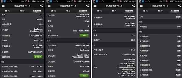 中兴V5 Max搭载最新的64位骁龙410处理器(MSM8916),四核1.2GHz,这与同时发布的中兴V5S保持一致,不过V5 Max在存储方面有了全面提升,内存和内置存储分别由1GB+8GB升级到2GB+16GB,在千元内手机中已经处于旗舰级别。