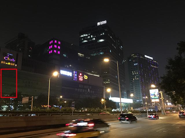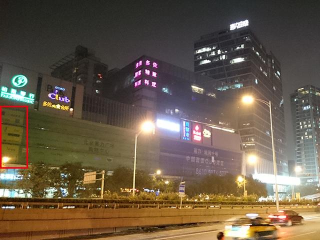 问题出现了,通过对比很明显的可以看出,Z3的夜景样张要比iPhone 6 Plus亮太多,因此很多细节你可以很明显的看得到,比如图中的广告牌。但是带来的问题是,ISO过高会导致对于灯光部分的处理过曝,所以你会看到在Z3的样张上,几乎所有的夜景灯光都是过曝的。