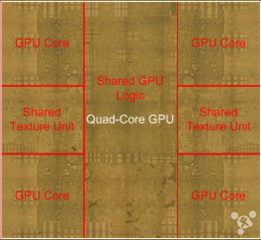 尽管这样的设想看似合情合理,但苹果公司向来对产品的技术参数三缄其口,唯有对新品硬件自行挖掘才能一探究竟。然而,结果证明连ChipWorks这样的顶级专业团队这回也栽了。经过进一步细致研究发现,A8芯片上的GPU组其实只有四个,并非此前推测的六个,这也就排除了拥有6核心GX6650的说法。基于四核心的事实,说明苹果在A8上仍然只采用四核心PowerVR GX6450,那么这将意味着它只是A7 PowerVR G6430的简单升级版。GX6450拥有一定的性能优化和功能升级,如支持ASTC纹理压缩技术,这一点在苹果的文档中已有说明。