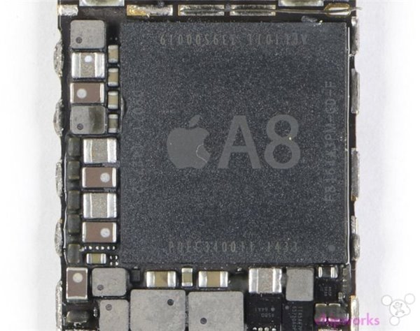 此时我们暂且先抛开 GPU 和 CPU,A8 最大的改变是它体积更小了。根据 Chipworks 的拆解显示,A8 采用了台积电新的 20nm 制程工艺,这使得 iPhone 6 成为第一款配备 20nm 制程 SoC 的智能手机。