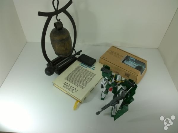 在室内灯箱场景中对静物进行拍摄,捕捉对象分别为表面质感和尺寸各不相同的物体,包括书本、金属物品、塑料玩具以及硬质包装盒等。在这样的对比之中,我们对iPhone 6相机在该条件下的成像限制进行探索。值得欣喜的是,苹果iPhone 6相比前代机型已经获得了一些明显的改善,比如在处理金属质地的挂钟时细节和色彩表现更为成熟。不过相比于Galaxy S5 LTE-A,iPhone 6确实落后一些,因为分辨率较低,而且角度不够广泛。