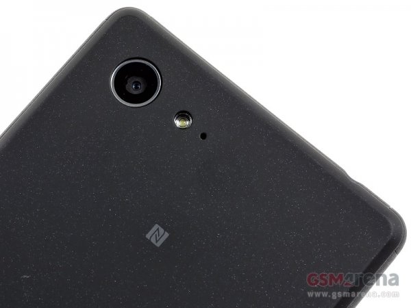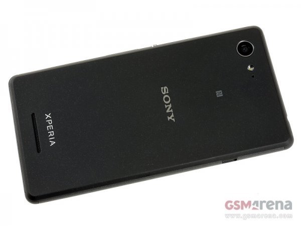 500万像素的镜头和单LED补光灯在机身上方,后背的NFC标志也意味着索尼很厚道地为这台低端手机配备了NFC芯片。