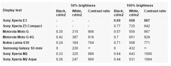 E3的黑色显示效果还行,在同级别之中属于中等水平,对比度表现也还不错,屏幕最大亮度达到了608尼特,这一点值得赞赏,最大的软肋还是像素密度,相对于MOTO G没有优势。