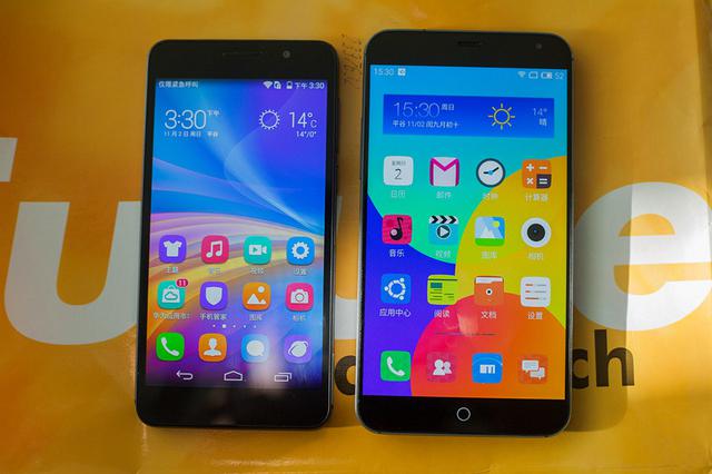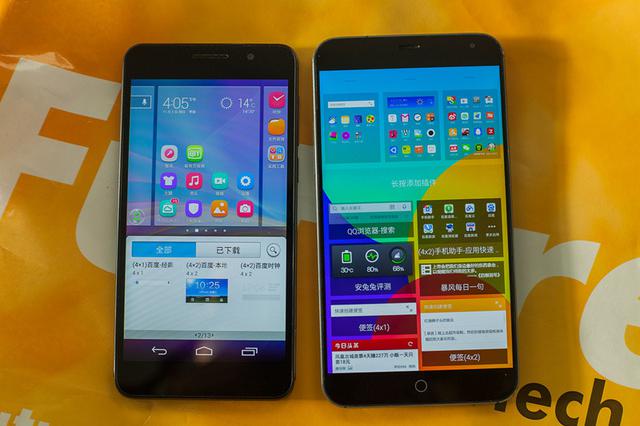 魅族MX4采用了一块5.36英寸1920x1152的分辨率的Full HD+屏幕,这块来自于夏普的屏幕在色域、亮度和对比度上均有不少的提升,荣耀6在屏幕配置上也不含糊,采用的是JDI生产的5英寸Incell技术屏幕,屏幕分辨率为1920×1080P,像素密度为445ppi。