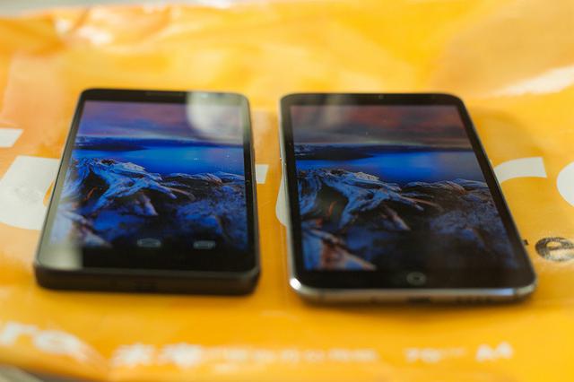 先看正面,荣耀6配备日本JDI生产的5.0英寸1080P分辨率屏幕,采用incell技术,覆盖第三代康宁大猩猩玻璃。魅族MX4的电源键仍然设置在机身的顶部,作为一个5.36寸而且有些胖(15:9)的大屏手机这是一个很不科学的设计,在单手握持的情况下手指根本就没法碰到电源键,解锁和锁屏都很困难,但是其双击亮屏功能的加入解决了这个问题。