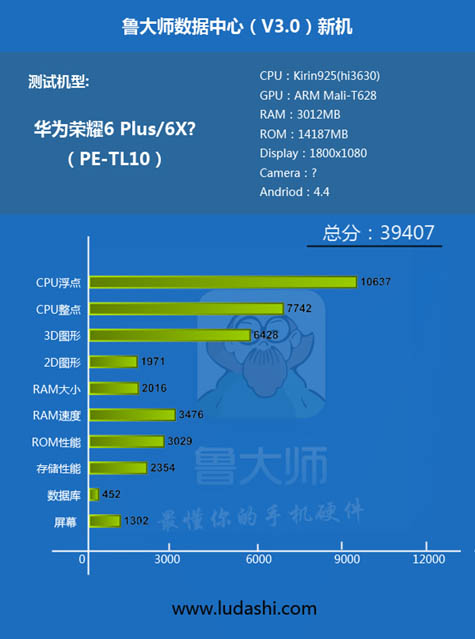 昨日智能硬件评测第一品牌鲁大师在官方微博上公布了一款代号为华为PE-TL10的手机产品测试成绩,结合之前媒体报道,这款在工信部备案的手机很有可能是12月17会发布荣耀6 Plus。