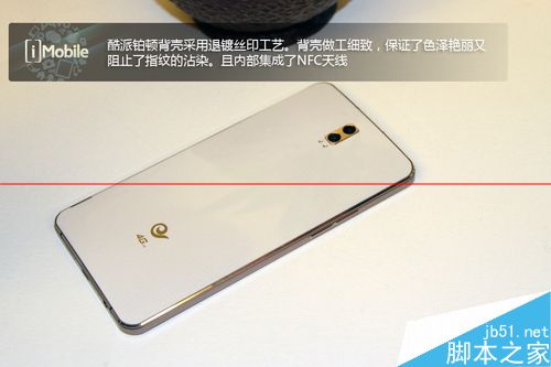 机身背面后盖可拆卸,底纹为0.06mm超精细金属网格工艺。酷派铂顿在外观细节上下了不小的功夫。同时酷派铂顿推出了多色背壳可供选择。