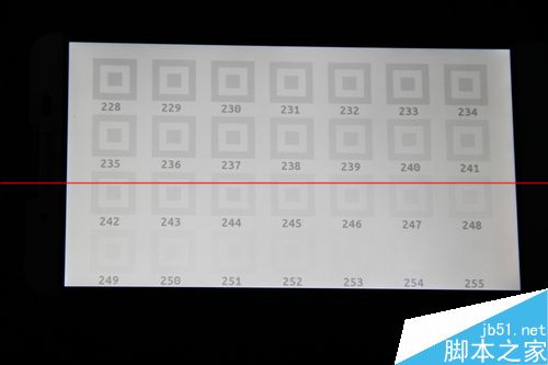 在过度带表现中酷派铂顿手机这块屏幕向白色过度明显比向黑色过度更自然。黑色饱和度可以显示到5阶的水准,0—4阶显示不完整;白色饱和度方面则可以完美显示244阶,最终245阶的边框也可以勉强看清。酷派铂顿手机在白色饱和度的表现即使在旗舰中也是名列前茅的。