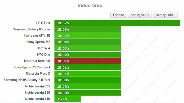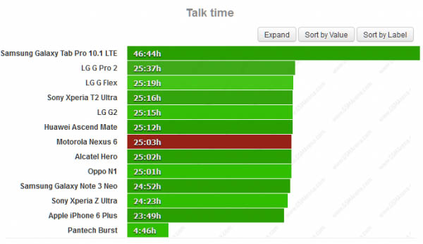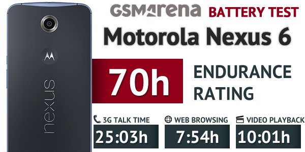 Nexus 6作为该家族最新成员,电池容量提升至3220mAh容量电池,但5.9英寸的Quad HD屏幕无疑也是耗电大户,那么这款设备的实际表现如何哪?继日前外媒PhoneArea对续航和充电时间进行评测后另一家外媒GSMarena对其续航表现进行了更加专业的测试,显示结果为70小时。