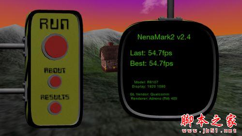 NenaMark 2.4是一款用于Android设备的硬件加速基准测试程序,通过演示一款实时渲染的画面来对手机的图形能力进行测试,包括反射、动态阴影、曲面参数、复杂光线模式等内容。