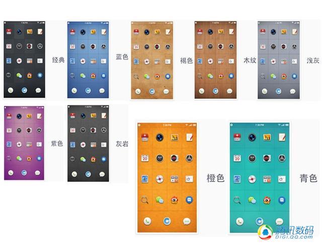 我做了一张图片,可以看到,之前系统提供了7种配色的主题,新加入的两个分别是青色和橙色,颜色更加的明快。