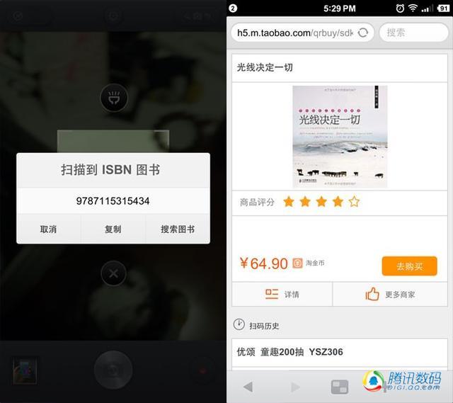 在1.3版本之后,锤子加入了淘宝的“码上淘”功能,扫描条码并点击搜索产品,会直接跳转到相应的淘宝产品最终页,用户可以直接下单购买。