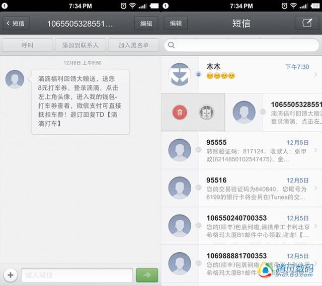 电话和短信这样的基础功能最有用的改进是可以直接在联系人或者短信内容页直接添加该联系人到黑名单。这功能太好了,以后我可以直接把所有的垃圾短信都直接一键屏蔽掉。同时在短信列表上横向滑动也可以直接将短信号码加入黑名单。