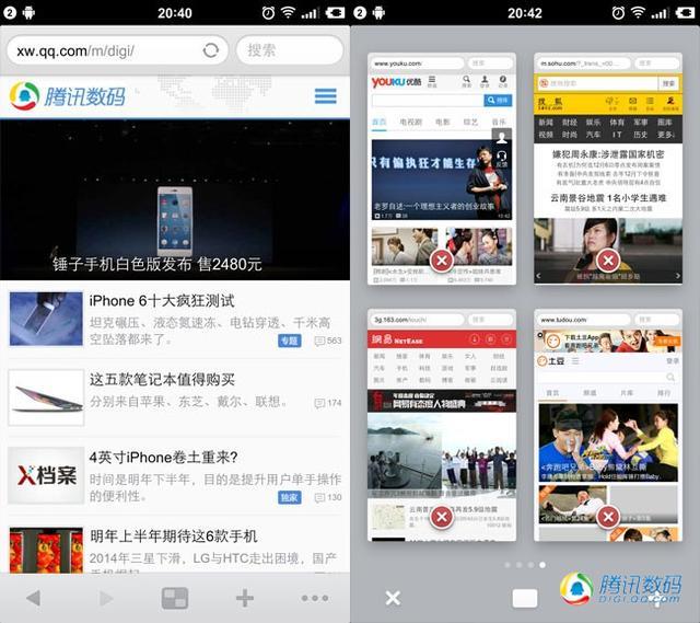 浏览器的改动也是我之前吐槽的。1.3版本浏览器的页卡增加到了16个,之前只有4个,好多时候我都不够用,这项改进势在必行,如果打开16个页面之后,再开启新的,第一个页面就会被关闭,这和之前的规则是一样的。