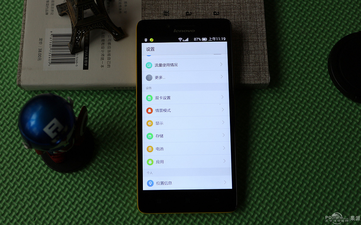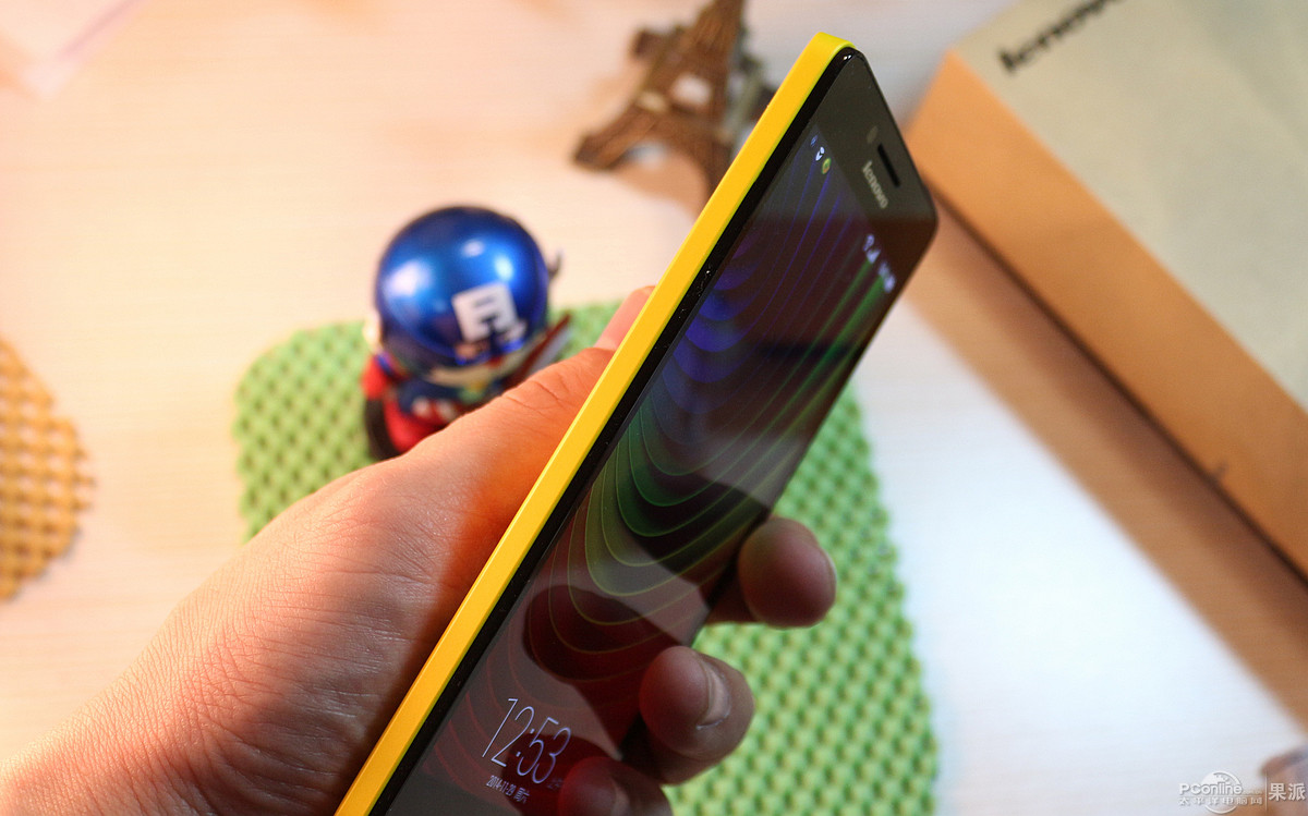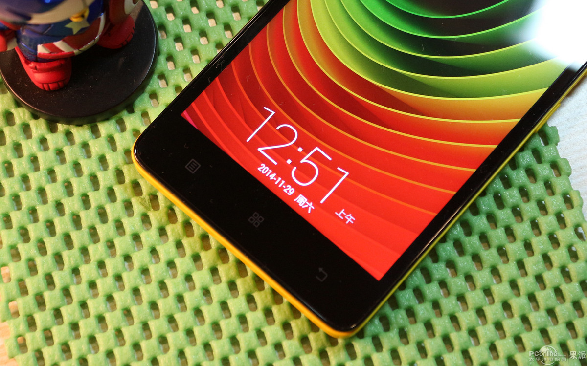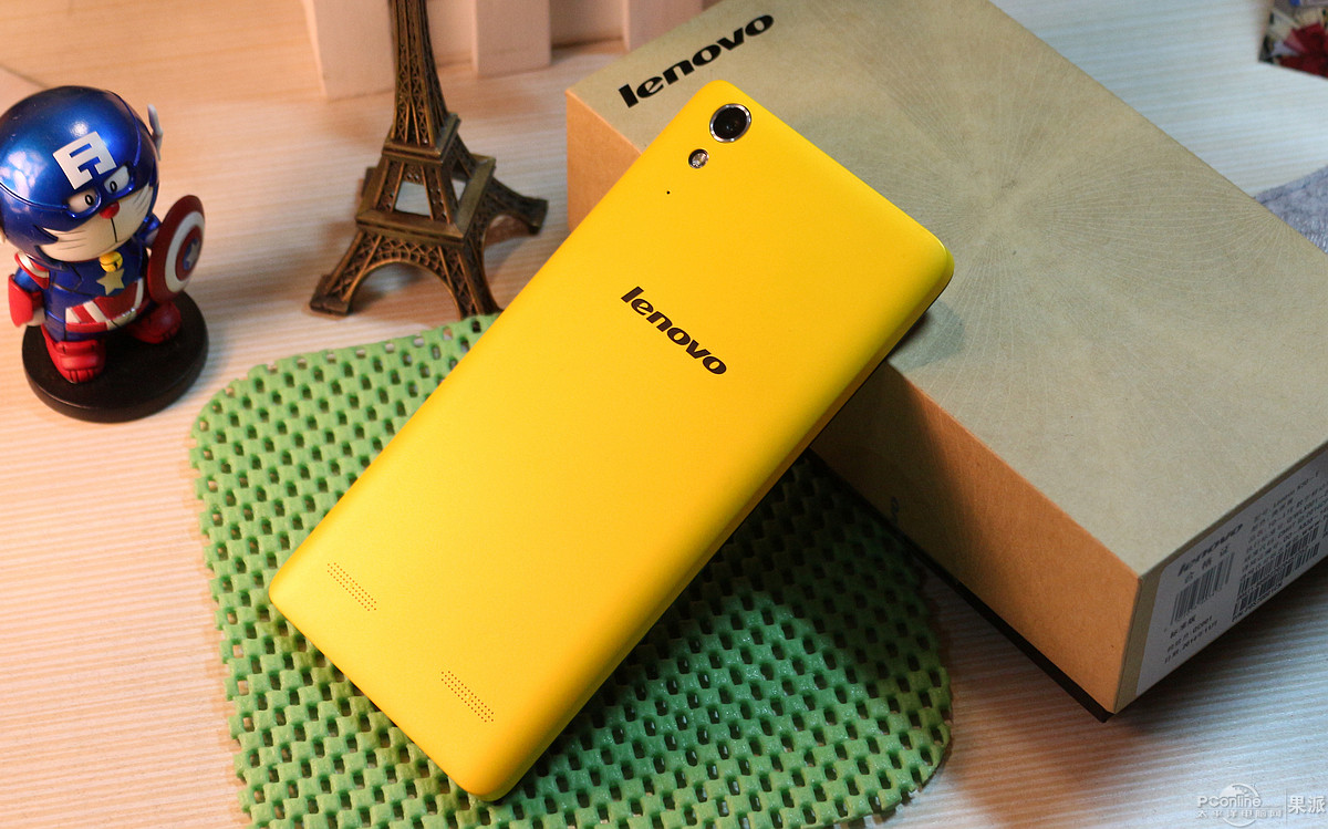 柠檬黄色的后盖采用塑料材质,但是略微的细磨砂处理令手感十分舒适,不易沾染指纹,清洁上也比较容易,看惯千篇一律的黑白色外观的手机,一抹柠檬黄足够给人眼前一亮的感觉。