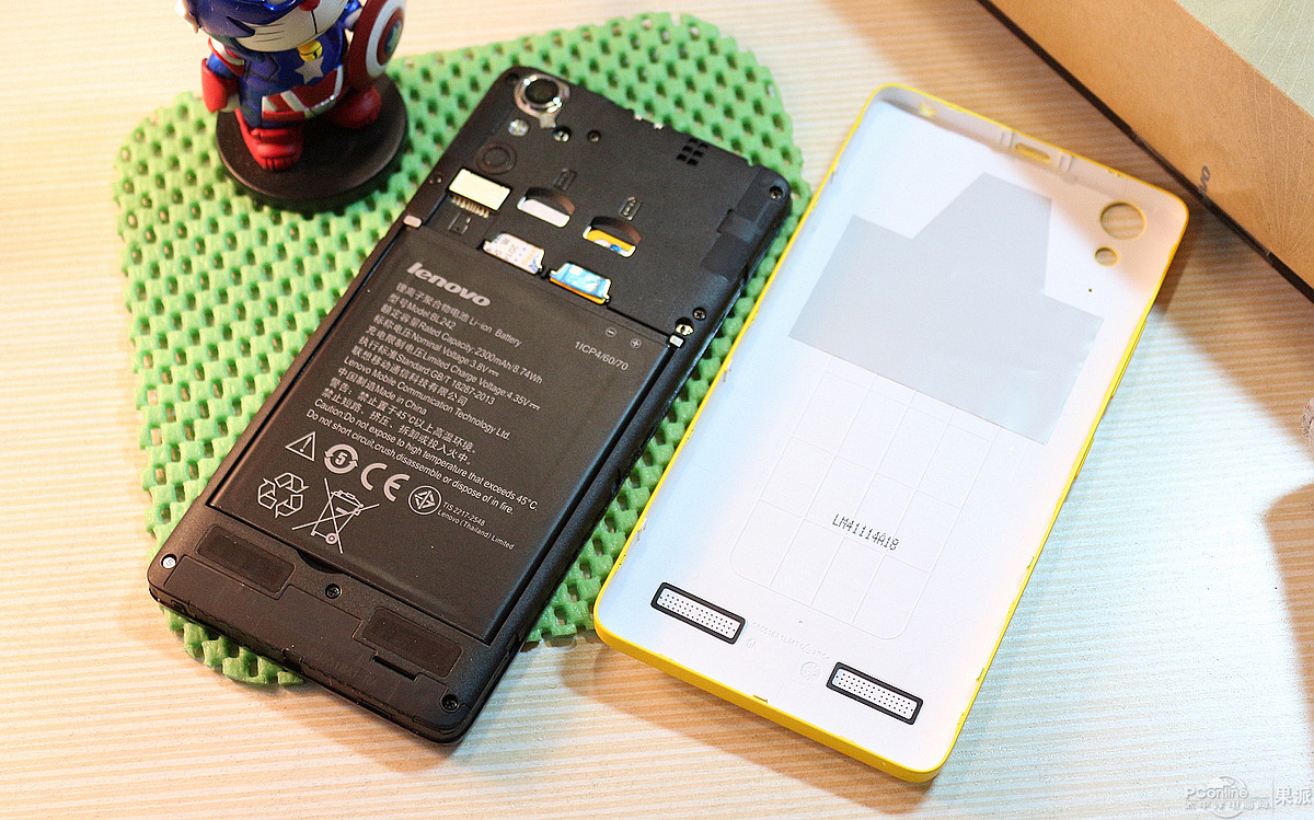 后盖可根据自己兴趣来更换不同颜色的类型,可以看到该机支持双卡双待,不过只有卡槽1支持移动4G,卡槽2只支持联通/移动2G。乐檬K3还能扩展TF卡和更换电池,电池容量为2300mAh,不是很大,正常使用一天一充还是少不了的。