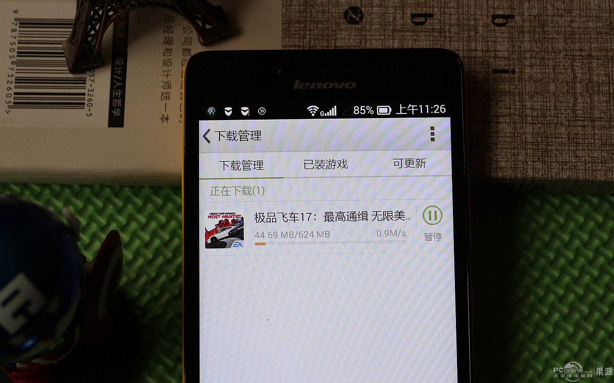 最后来看看wifi信号水平和续航,用拇指玩下载极品飞车,下载速度能稳定在平均500k/s。而续航上,正常使用一天是问题不大的,由于内存只有1G,在运行较多程序后需要经常点“一键清理后台”,这样客观上也能结束一些后台耗电程序,不知不觉提升了一点续航能力,所以用一天半还是问题不大的。
