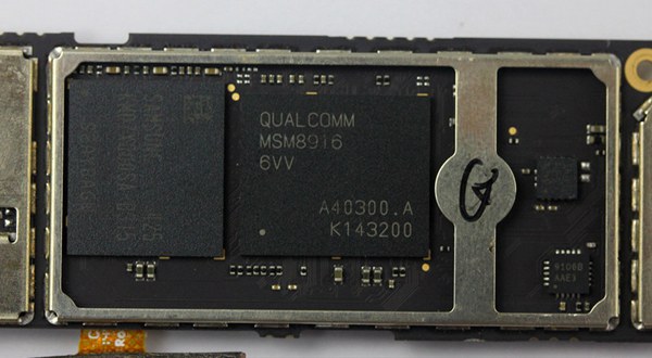 图为高通骁龙MSM8916四核处理器,它隶属于骁龙410系列,是一枚64位架构处理器。