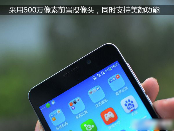 酷派ivvi K1机身屏幕上方是手机的听筒,金属镂空防尘罩与镜面持平,毫无违和感。听筒的右侧是一颗500万像素的前置摄像头,在弱光条件下自拍依然清晰。特别的是,K1支持了深受年轻人欢迎的美颜自拍功能。让爱自拍的用户能随时随地的体验自拍美颜的效果。