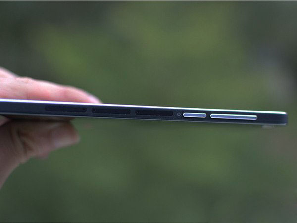 ivvi K1的电源键、音量键及TF卡槽和两个SIM卡槽都设置在了机身右侧。该机支持双卡双待,却没有采用目前流行的单托双卡设计,这样机身的右侧布局就变成了音量键在最上方,往下依次为电源键和三个卡槽,值得一提的是在卡槽上都标注有对应的网络制式及卡槽的位置,方便用户在使用中放置SIM卡和TF卡,三个卡槽,最上面的为普通的SIM卡槽,中间的为3G\4G卡槽,最下面的是TF卡槽。
