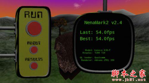 NenaMark 2.4是一款用于Android设备的硬件加速基准测试程序,通过演示一款实时渲染的画面来对手机的图形能力进行测试,包括反射、动态阴影、曲面参数、复杂光线模式等内容。在NenaMark 2.4测试中,乐檬K3仅为54.0fps,表现较为普通。