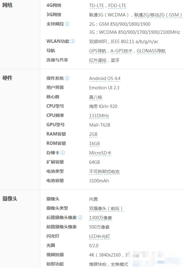 此外,该机内置3GB内存,有16GB、32GB两个存储版本,还提供了3100mAh电池(智能2.0省电技术,号称省电30%),500万像素前置+1300万像素索尼第四代BSI堆栈式后置摄像头。