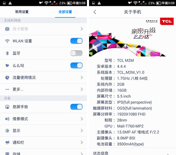 在评测之前,我们还是先睹为快看看TCL么么哒3N的配置参数情况。