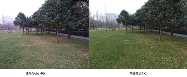 这种强、弱光反差明显的场景中,荣耀畅玩4X整体色调表现比红米Note 4G更真实。