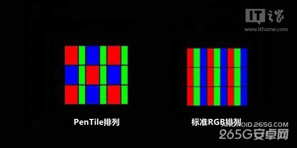 ▲两者的屏幕像素排列方式为PenTile排列,也就是俗称的“P排列”。这样的排列方式,在显示非水平、垂直等内容时,需要临近像素协助发光,导致其显示内容边缘发虚。