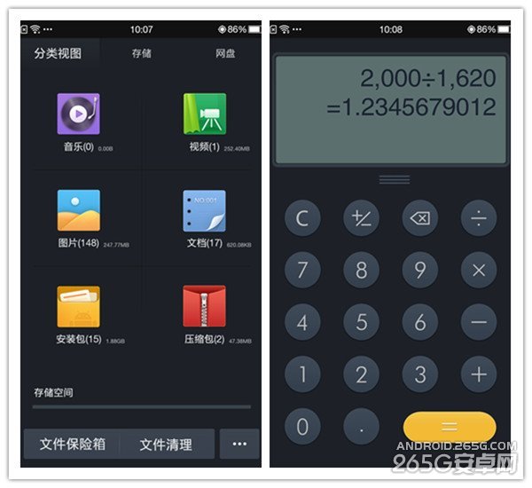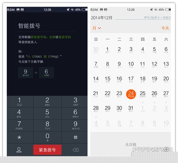 vivo X5Max则完全是另一幅景象,相比于OPPO R5,其暗色系的系统界面明显黑的不够彻底,像日历、计算器等几个系统应用依然是白色风。黑白两种风格的混搭,让人感觉到该系统的完善程度不够高,同时对续航也有一定的影响。