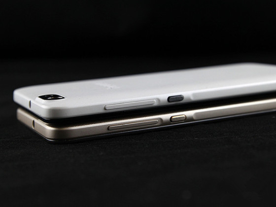 正面顶部设有500万像素三星/OV摄像头,拍摄角度可达88度,拥有1.4um大像素感光与特色的“炯炯拍”自拍预览小窗专利功能。摄像头旁边隐藏着光线感应器与距离感应器,利于节约电能。