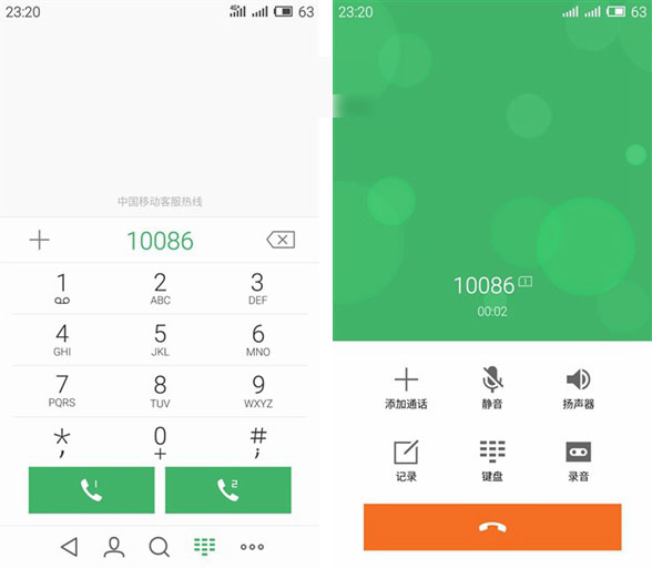 最特别的地方来说,外观评测我们就已经知道了,魅蓝Note支持双卡双待,是魅族首款具备双卡双待的手机。所以在拨打电话界面,我们可以有主副卡选择拨号,如下图所示。