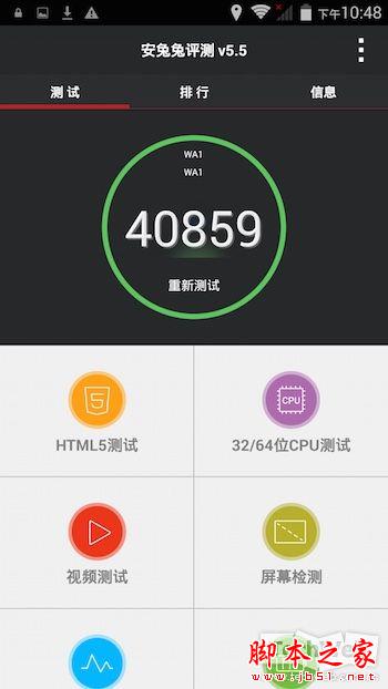 安兔兔性能测试是最常用的测试软件,里面涵盖了内存和闪存、CPU、图形、SD卡读取/写入等测试项目,并给出一个综合性分数。最后得出的分数,基本上能比较准确的表示你的手机属于那一个性能阶梯。在安兔兔跑分测试中,小哇手机最终得分40859分,远超红米Note。