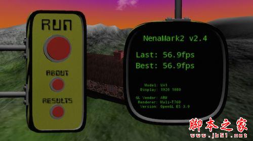 NenaMark 2.4是一款用于Android设备的硬件加速基准测试程序,通过演示一款实时渲染的画面来对手机的图形能力进行测试,包括反射、动态阴影、曲面参数、复杂光线模式等内容。小哇手机平均56.9fps的最终结果显示了超强的3D性能。