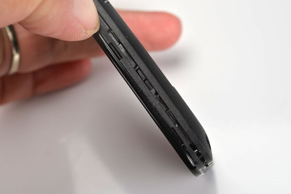 拆开固定螺丝后,就可以将后盖的卡扣打开了,整个手机的后壳就可以完全分离,如下图所示。