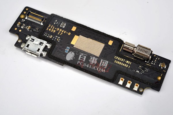 大神F1 Plus内部结构比较简单,采用最常见的典型上下双PCB架构,上面的是手机的核心主板,下方的小PCB主要是连接器,如下图所示。