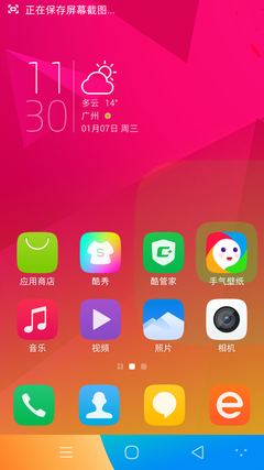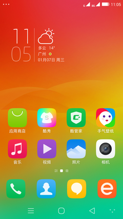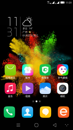 Cool UI6.0依然单层菜单设计,所有的应用都放在系统的桌面上,系统的图标也进行了重新设计,更为扁平化,整个系统相对旧的Cool UI5.7更为美观简洁,一改Cool UI跟人浓重商务气息的感觉。