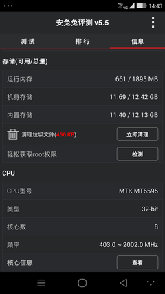 图形测试方面我们采用3Dmark安卓版进行测试,测试运行在1080P分辨率下,最终得分是8654分,分数属于中上水平,当然这个分数和高通骁龙801还是有一定的差距,对于日常的游戏大神X7已经能够很好应付。